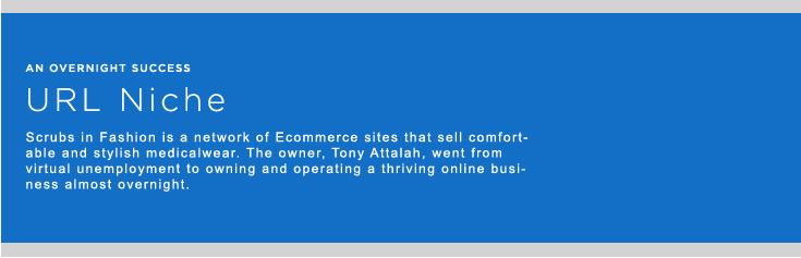 Scrubs in Fashion is a network of Ecommerce sites that sell comfortable and stylish medicalwear. The owner, Tony Attalah, went from virtual unemployment to owning and operating a thriving online business almost overnight.
